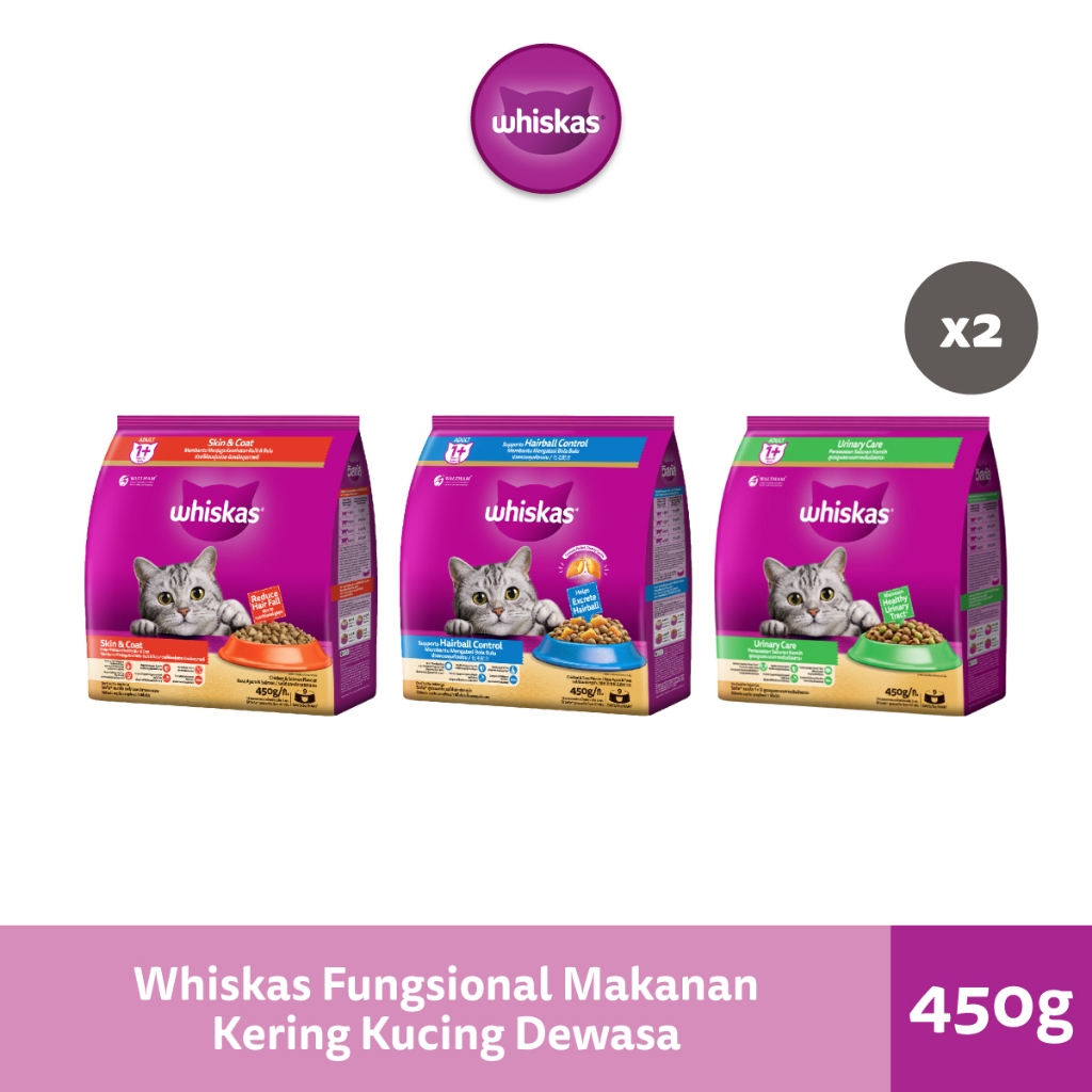 Whiskas Fungsional Makanan Kucing Kering Pilih Varian 450g (2-Pack)