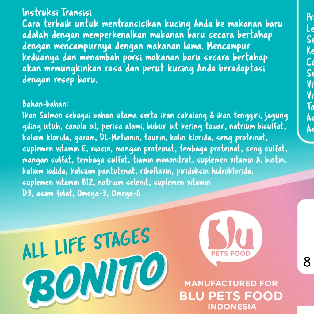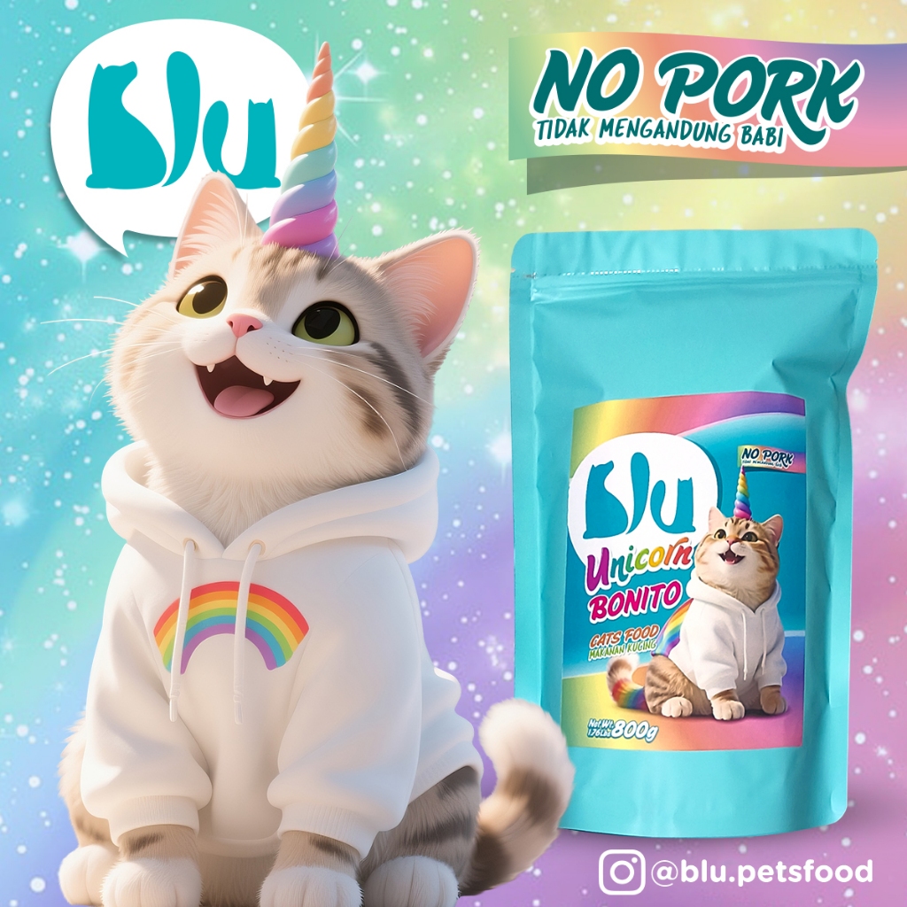BLU Unicorn Cat Food Rasa Ikan Bonito, Kitten Adult, Dewasa Tabby 800 gr, Makanan Kucing Kering