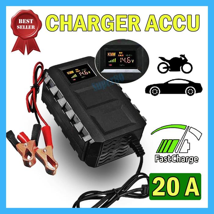 ALAT CAS AKI 12V 6A / 20A CHARGER ACCU OTOMATIS AUTOMATIC REPAIR 6 - 20 AMPERE MOTOR MOBIL CASAN PORTABLE 12VOLT - KUNING 6A