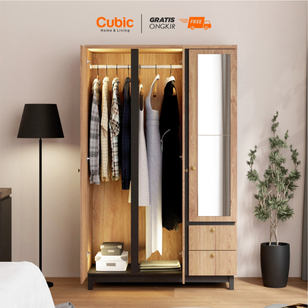 Cubic Lemari Pakaian Cemin Minimalis 3 Pintu - LUNA GRANDE LP 3P