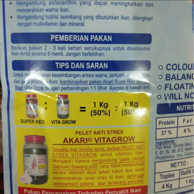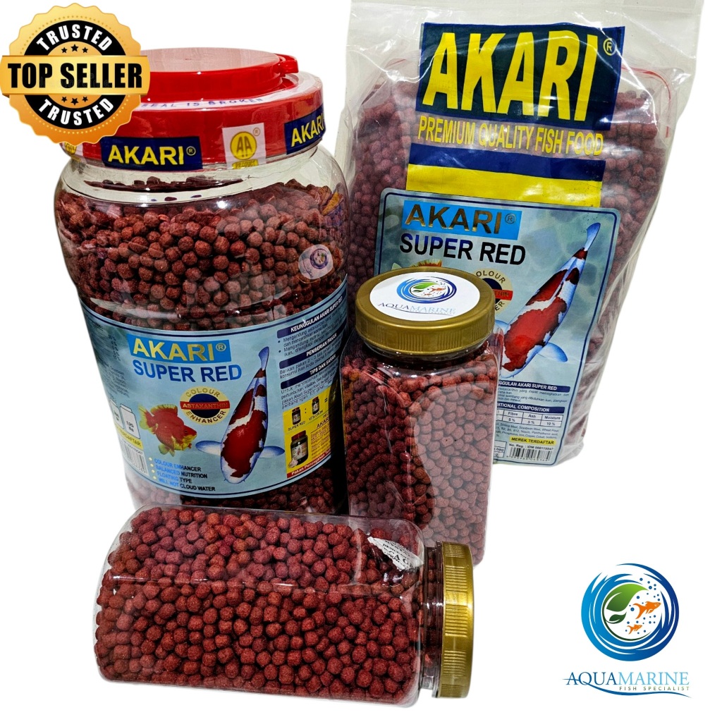 AKARI SUPER RED PELET MERAH ASTAXANTHIN Pakan Ikan Merah Koi Koki Cichlid 300gr 300 gram 1mm 2mm Aquamarine Fish