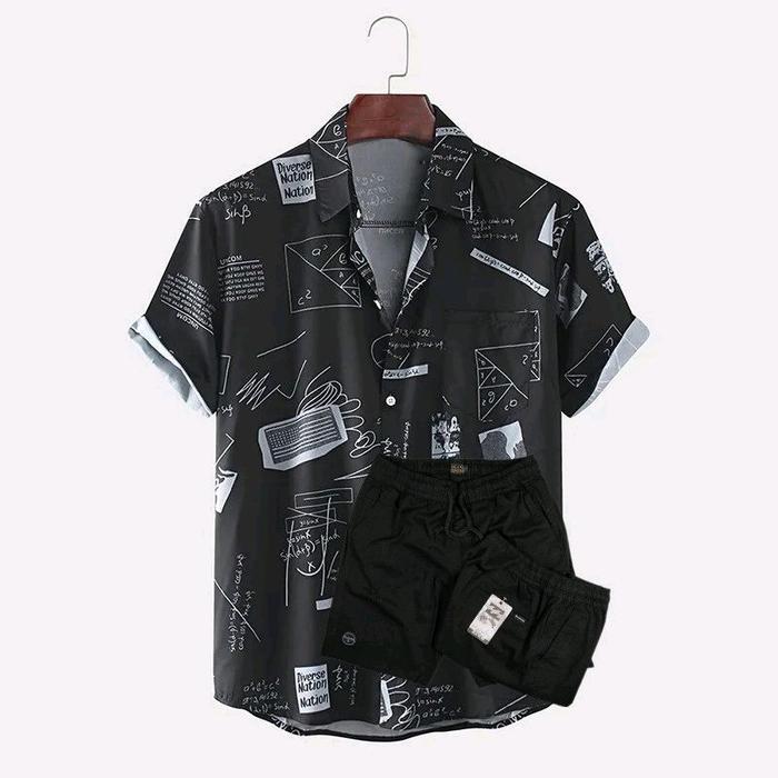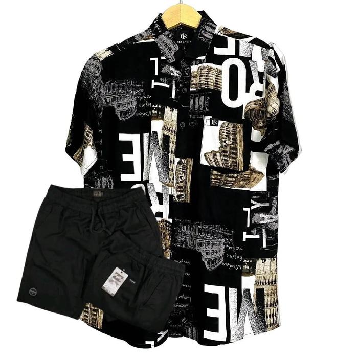 One Set Setelan Kemeja Allora Pria Wanita Motif Amarilo Premium Rayon Cotton Celana Katun Casual Lengan Pendek Keren