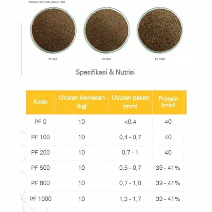 Pakan Pelet Benih Ikan Prima Feed PF500 uk.300gram Repack