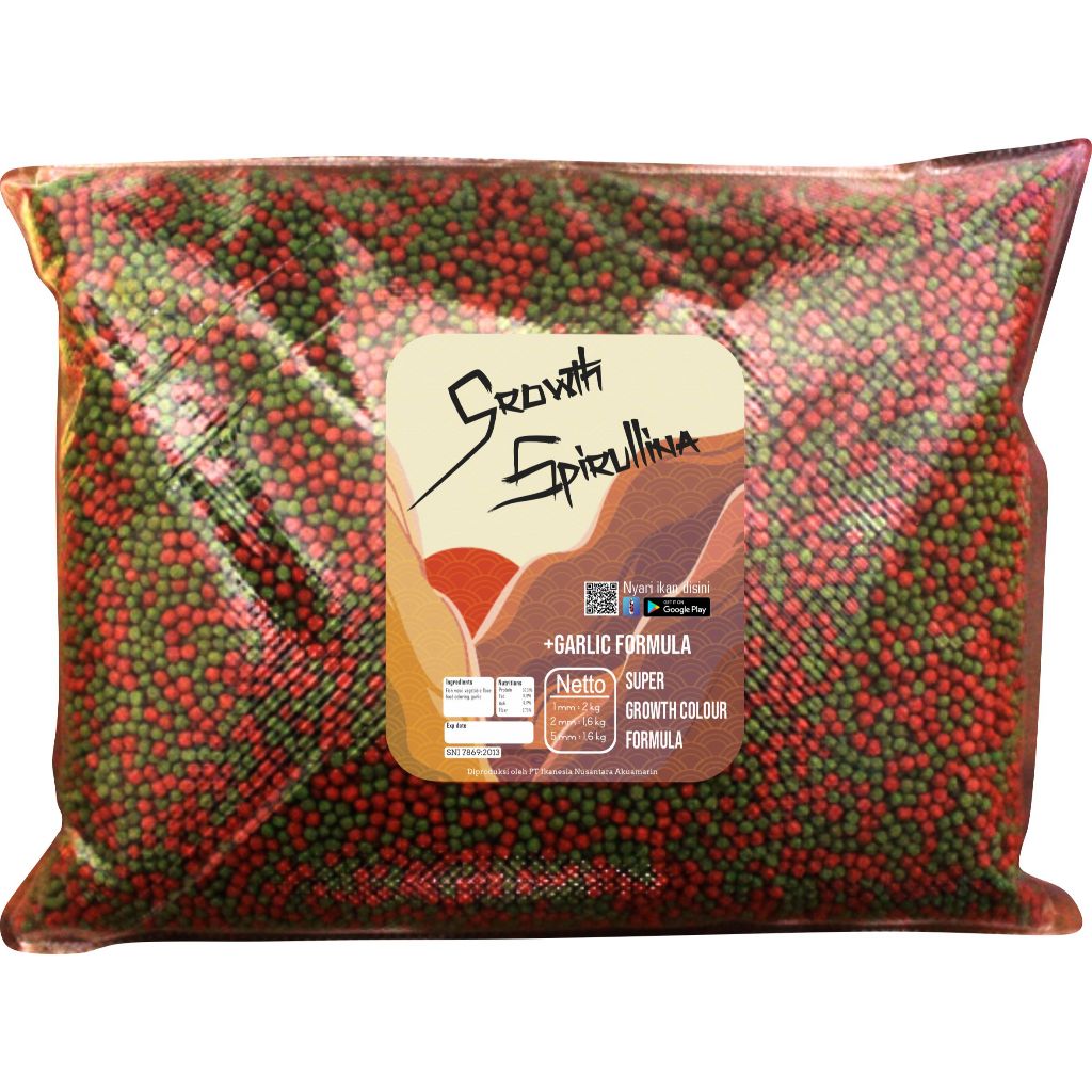 Pakan Pelet Makanan Ikan Koi Growth Spirulina 1,6 KG Ekstrak Bawang Putih Toples IKANESIA