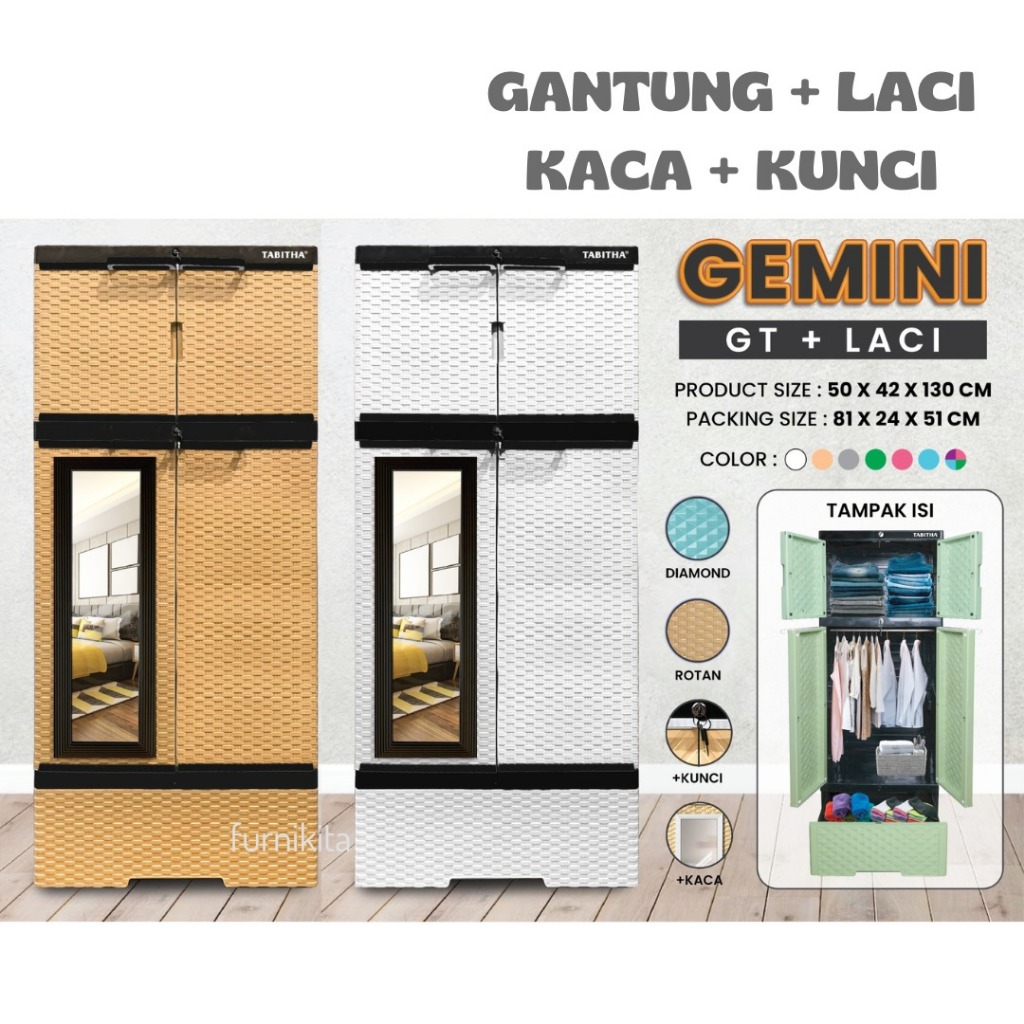 [Star]LEMARI PAKAIAN PLASTIK TABITHA GEMINI KACA KUNCI GANTUNG DAN HAMBAL