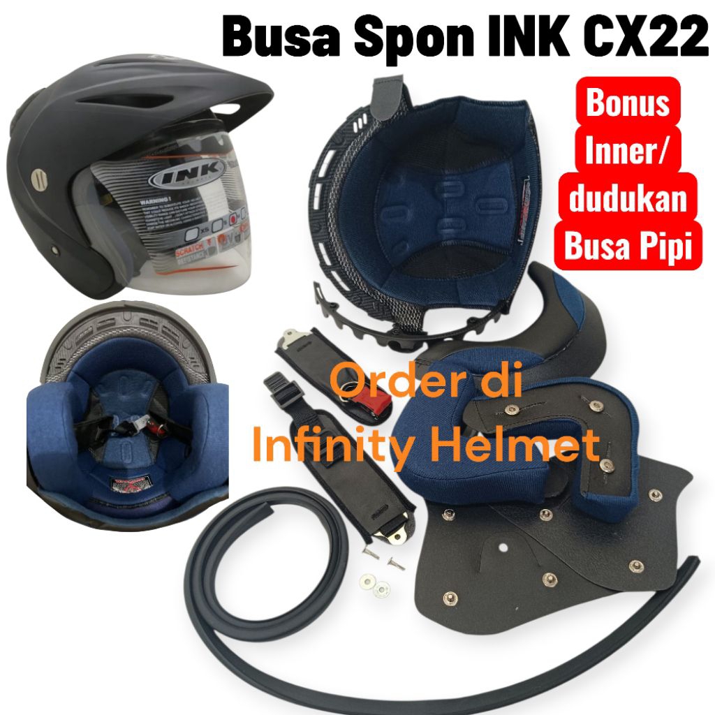 Busa Spon Helm Ink Cx22 Cx 22 Busa Fullset Ink Topi Cx22 + Lis Karet 1 Meter Free Iner