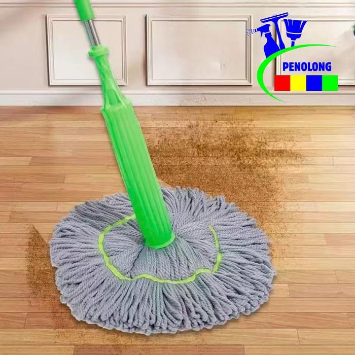 Alat Pel Lantai 1 Detik Pel Otomatis Pel Lantai Putar Mikrofiber Efisien 360° Hijau Microfiber