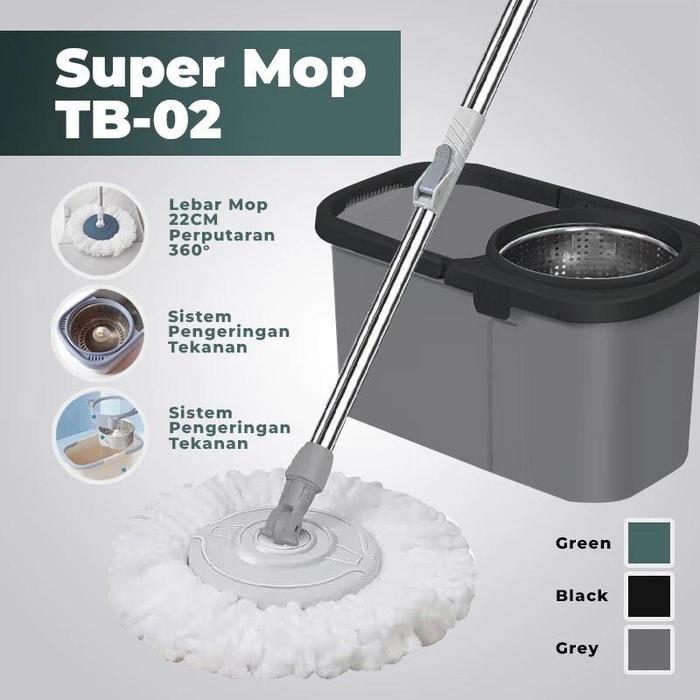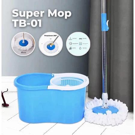 Magic Spin Mop Set Alat Pel Lantai Super Mop Dengan Ember Kain Pel Lantai Peras Otomatis - Ungu