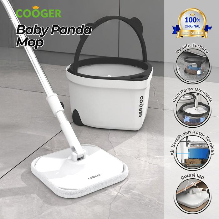 COOGER Pel Lantai dan Refill Panda Mini Dual Clean Mop Terbaru 2in1 Spin Mop Air Bersih dan Air Kotor Terpisah