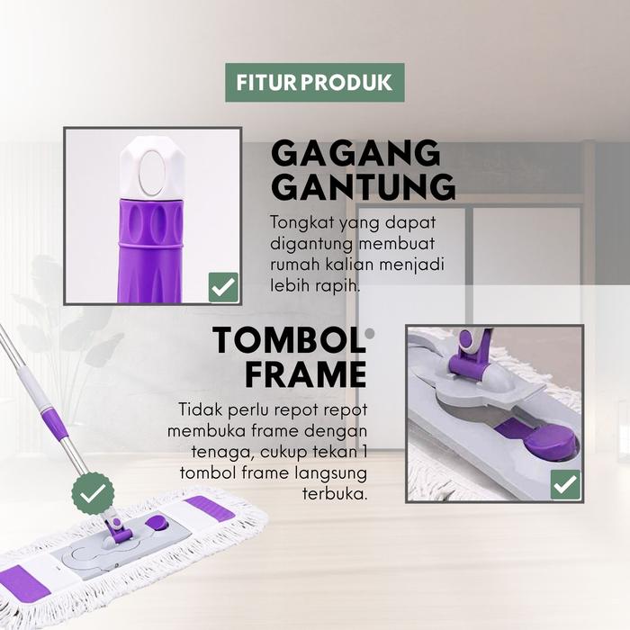 Dapat Dilepas Dengan Tombol Pel Datar Tongkat Teleskopik Dapat disesuaikan Tidak Membungkuk - 1 SET