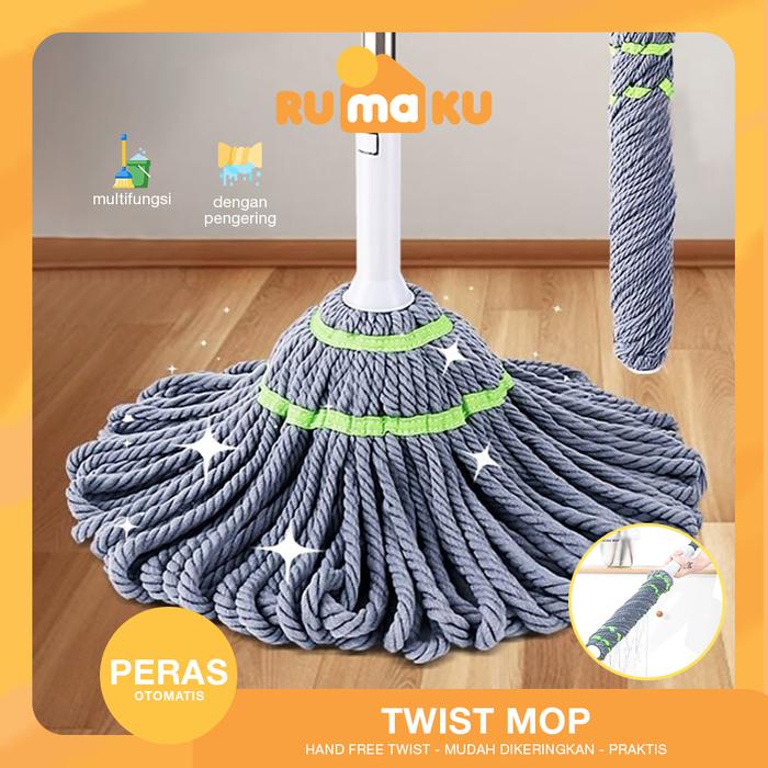 Rumaku Twist Mop Pel Lantai Tarik Peras Otomatis Kain Pel Microfiber Berkualitas Dengan Gagang Besi Anti Karat