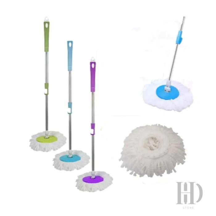 Tongkat Handle Pel + Kain Spin Mop Alat Pel Lantai Set Mop Kain Refill Spin Mop