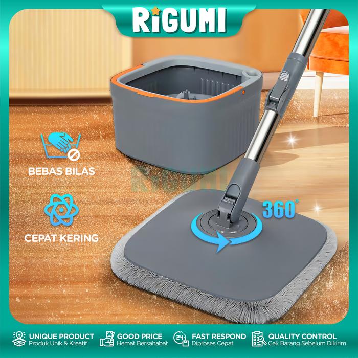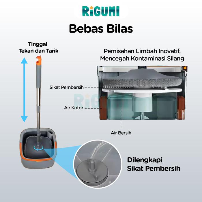Alat Pel Lantai Otomatis 360° Spin Flat Mop Set Bebas Bilas dengan Kain Microfiber Praktis & Cepat Kering - Bubble Wrap