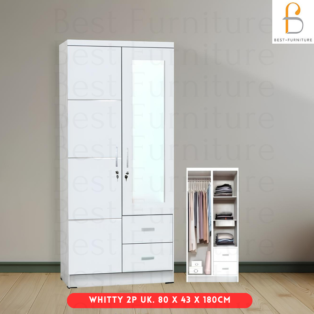 Best Lemari Pakaian 2 Pintu Putih Minimalis uk 80x180cm - Putih