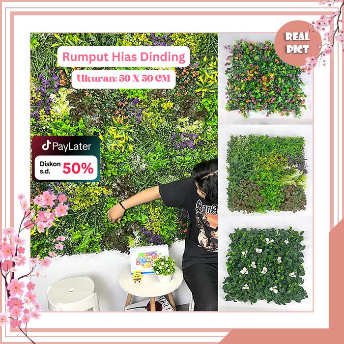 Unico Tanaman Rumput Hias Dekorasi Dinding Tanaman Artificial 50 X 50 Cm Bunga Hias Daun Dolar Hiasan Dinding Import Pbp