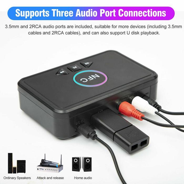 (bayar ditempat) TaffSTUDIO Audio Bluetooth 5.0 Receiver Adapter NFC RCA AUX - D10 - Warna Hitam