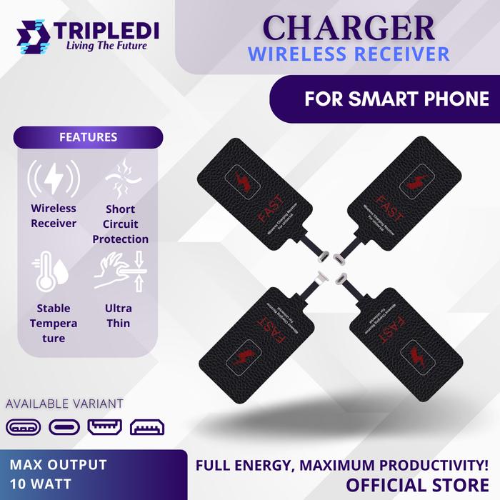 TRIPLEDI Wireless Charger Receiver Fast 10W 2A Micro USB Lightning Adapter Handphone - Type A