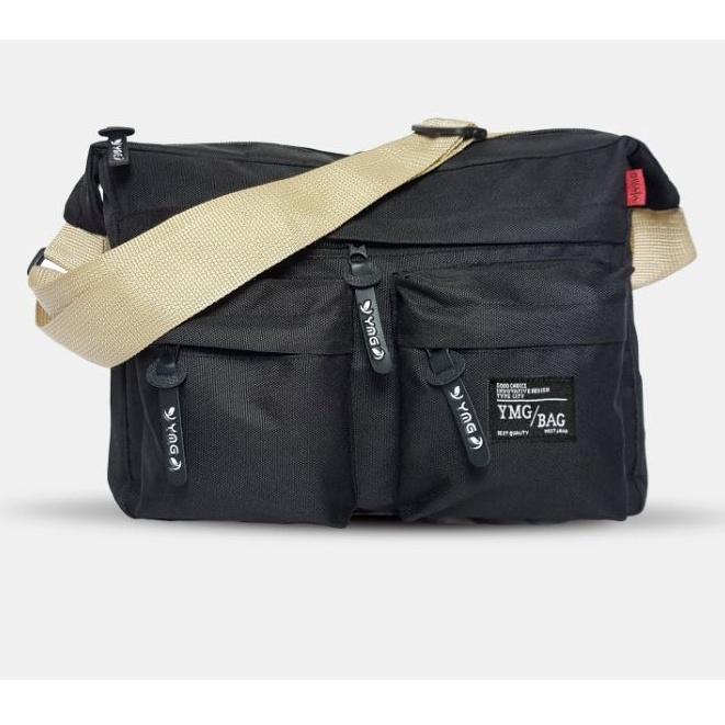 Terpercaya Tas Selempang Distro Pria Kanvas Tas Sekolah Kuliah Casual Hitam - Hitam Hemat