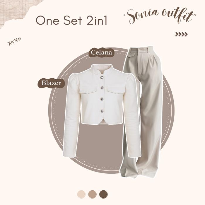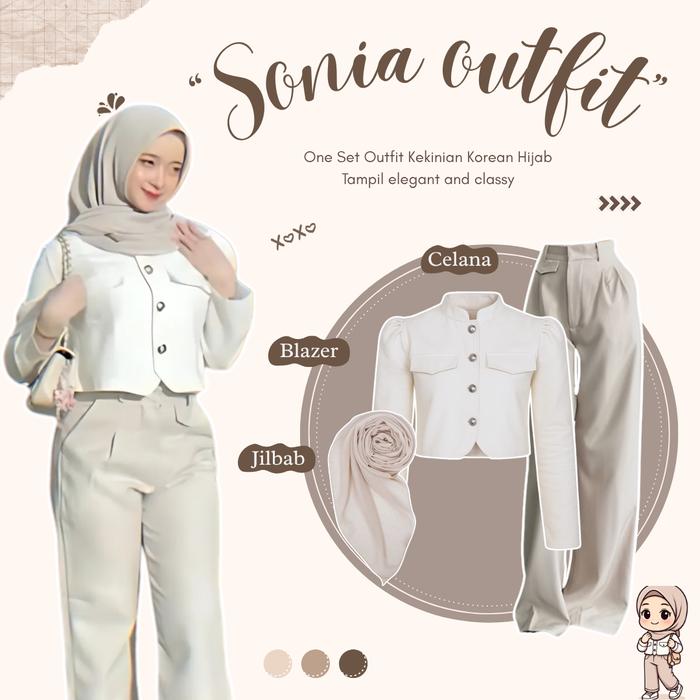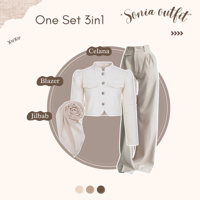 Setelan One Set 3In1 Kekinian | Ootd Style | Outfit Ngopi Trend | Blazzer+ Celana + Hijab - Cm155N Nyaman Panjang Wanita