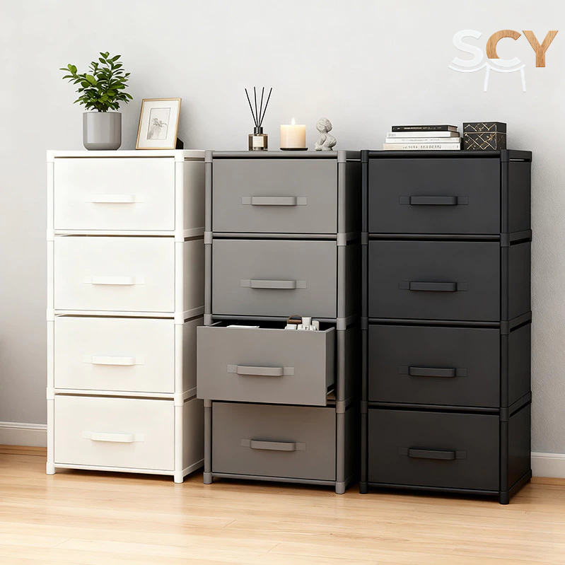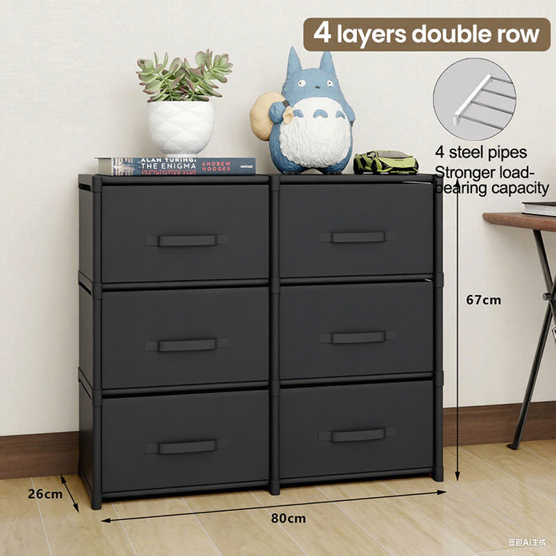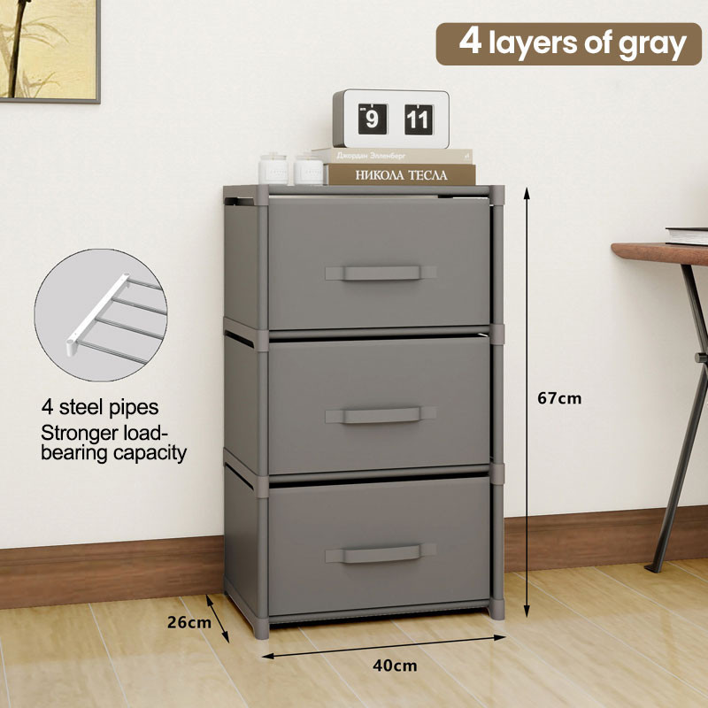 Lemari Penyimpanan Laci Portabel 4 Lapisan Lemari Kain Anti Debu Lemari Pakaian Multiguna Hemat Ruang