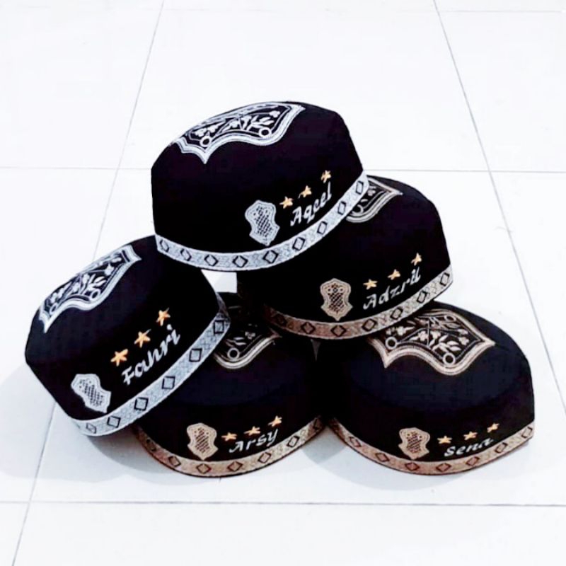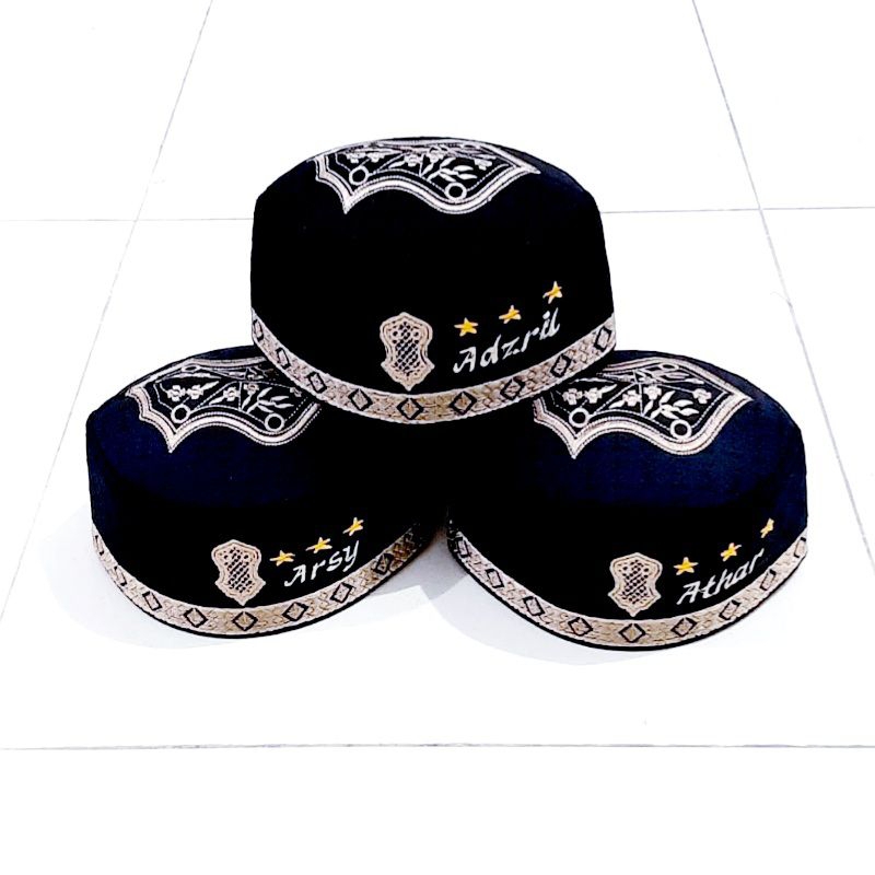 Peci Anak + Nama Peci Hitam Anak Custom bordir Nama Peci Nama Hitam Trompah
