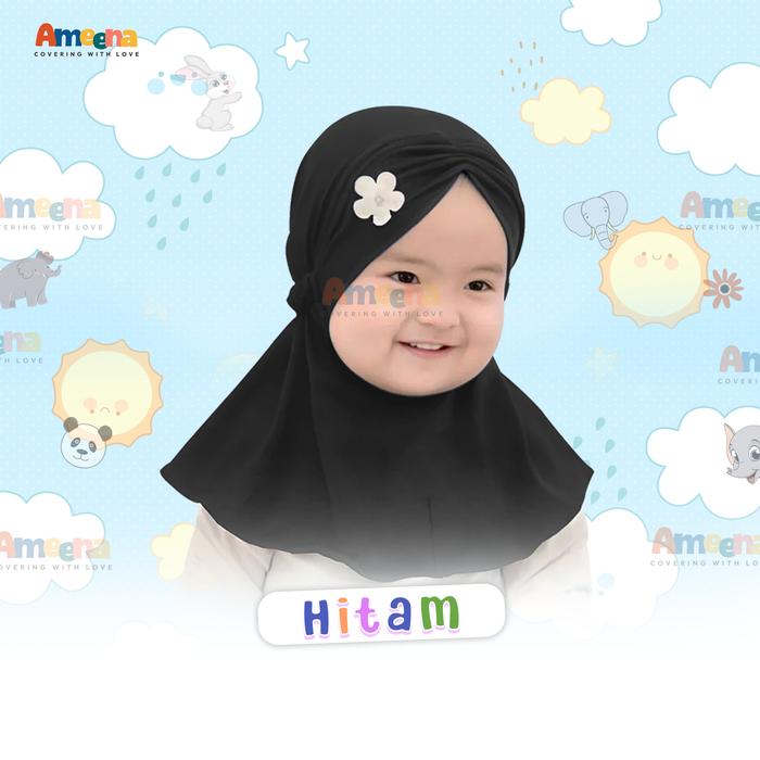 Jilbab Instan Anak Sakura Jersey Usia 0-2 Tahun Kerudung Anak Newborn Jilbab Bayi / Hijab Anak Beli Lokal - Hitam