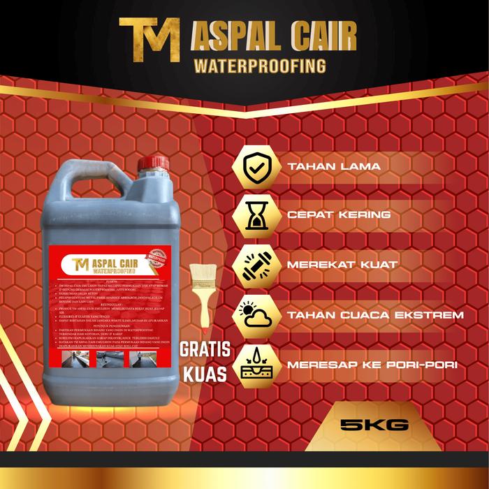 Aspal Cair 5kg – Cat Pelapis Anti Bocor Dak Beton Genteng Tembok Luar Waterproof