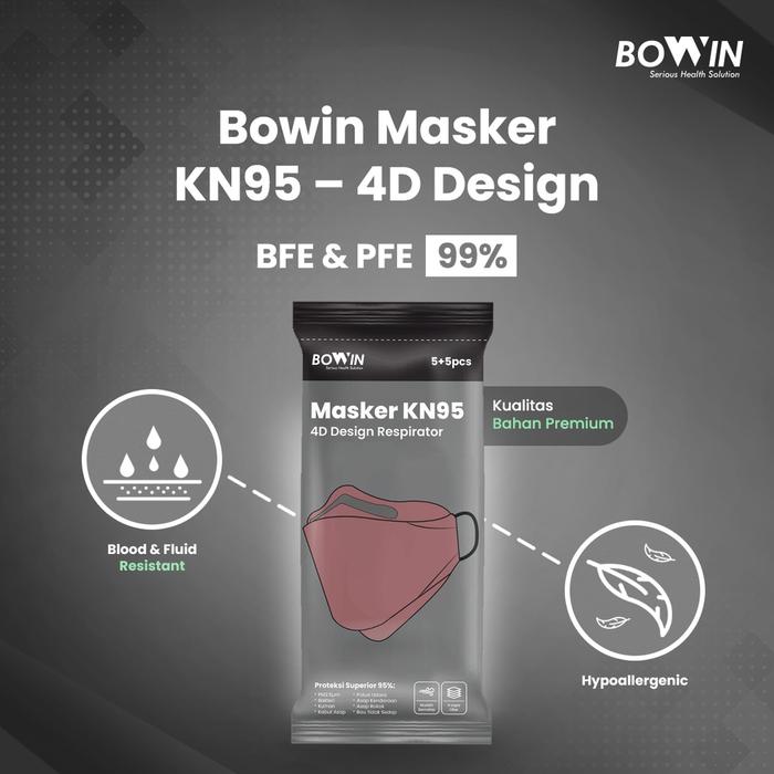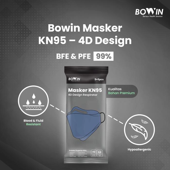 Masker KN95 Bowin 4D Design - (10 PCS) Filter 4 Lapisan + Karbon Aktif - Black