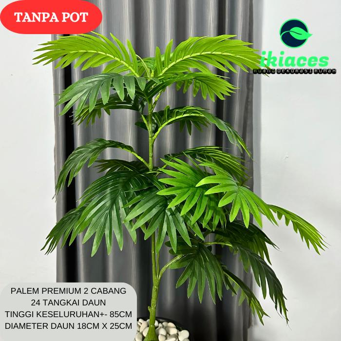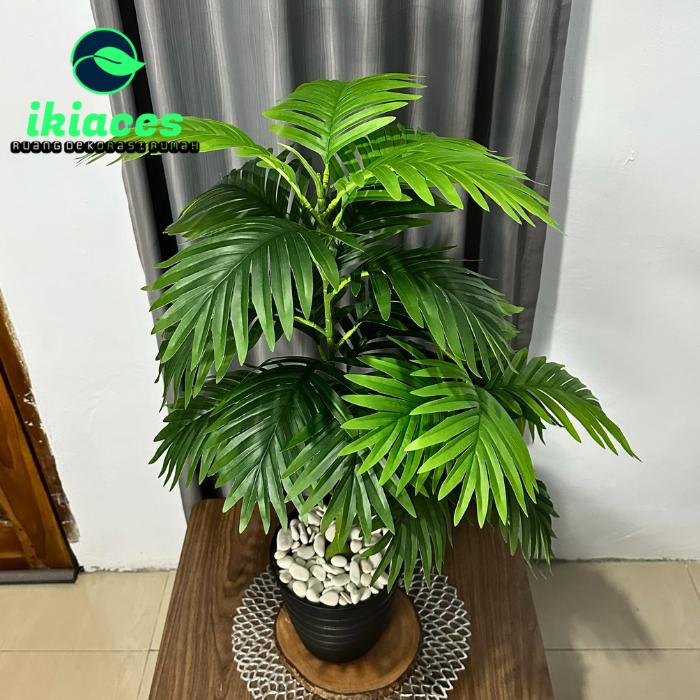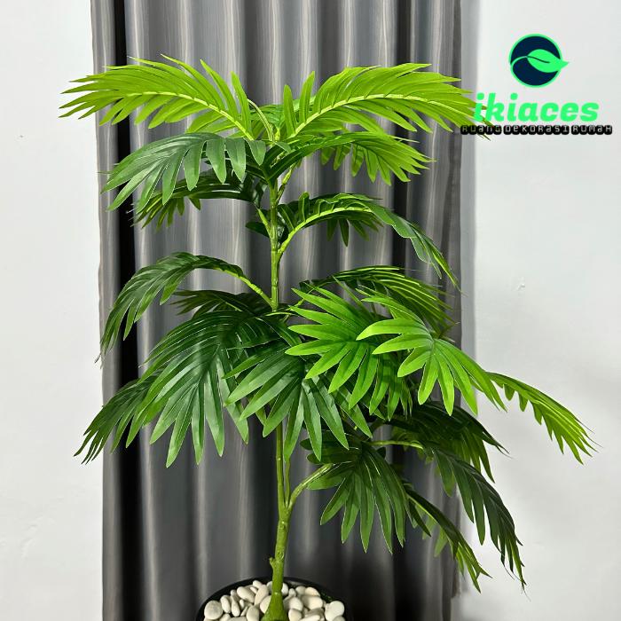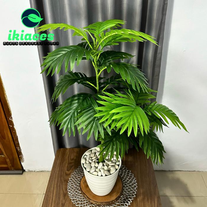 Daun Palem Jumbo Plastik Pohon Artifisial Dekorasi Sudut Rumah Pohon Palem Hias - Pot Putih