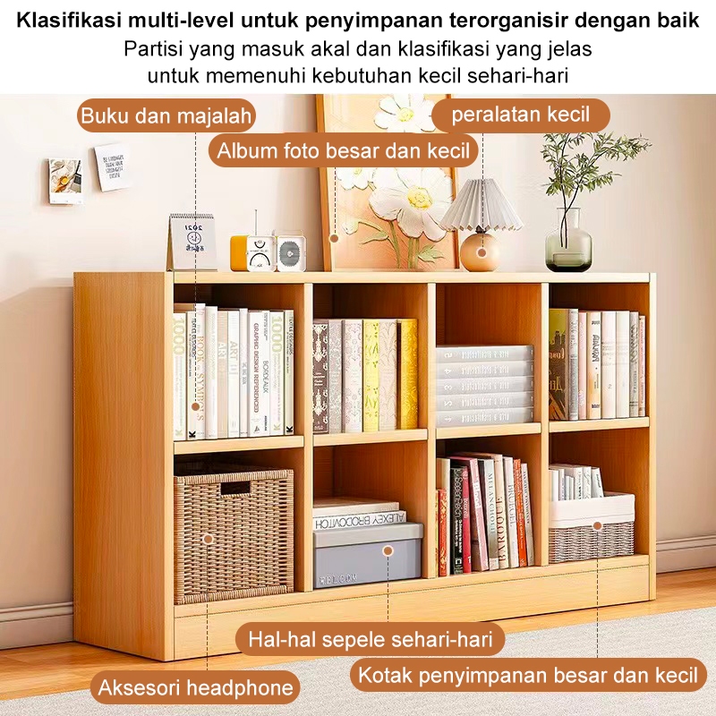 Lemari Buku 8 Kompartment Lemari Lantai Ruang Tamu Lemari Penyimpanan Lemari Kayu Minimalis