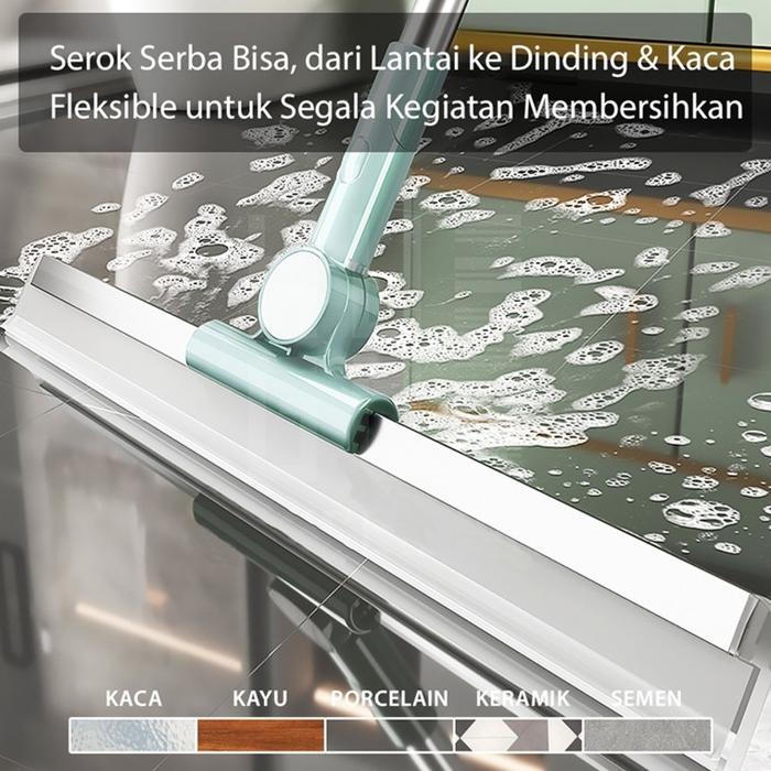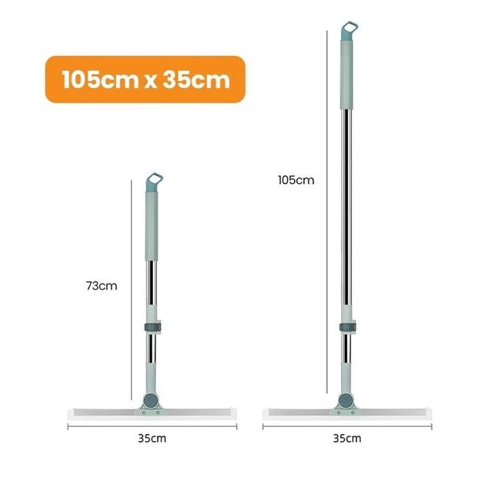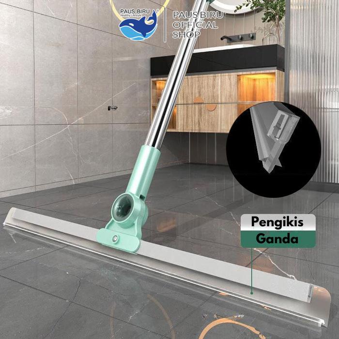 Paus Biru - Wiper Sapu Karet Silikon - Alat Pel Lantai Magic Broom Serbaguna untuk Basah & Kering - Lebar 35cm
