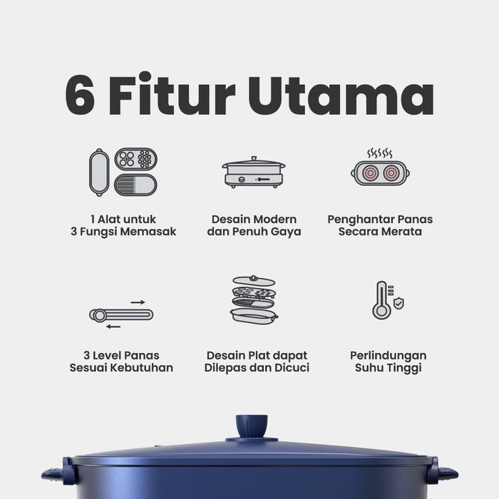 3 In 1 Electric Grill and Hotpot 4L / Pemanggang Perebus Makanan - Grill and Hotpot 4L