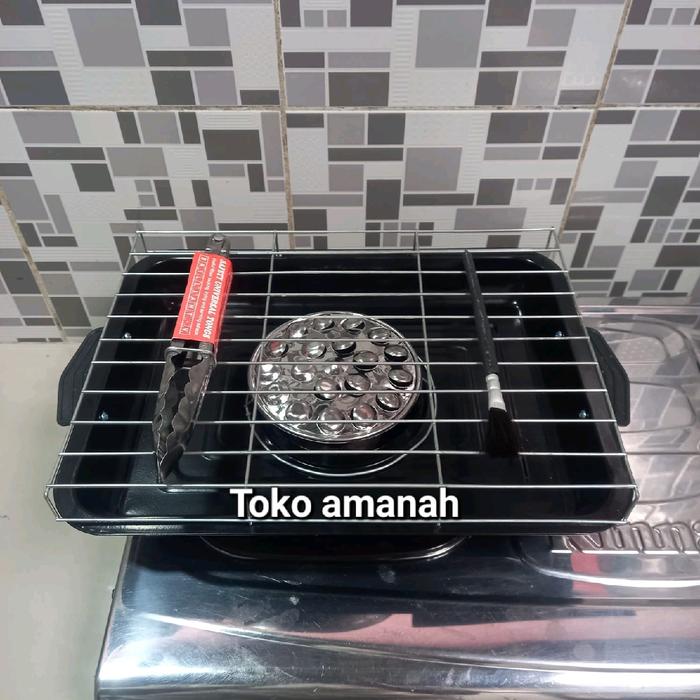 Roaster Grill 1 set Terbaru pemanggang sosis / Ayam / Ikan / Jagung Dsb Anti karat & Korosi - Hitam saja