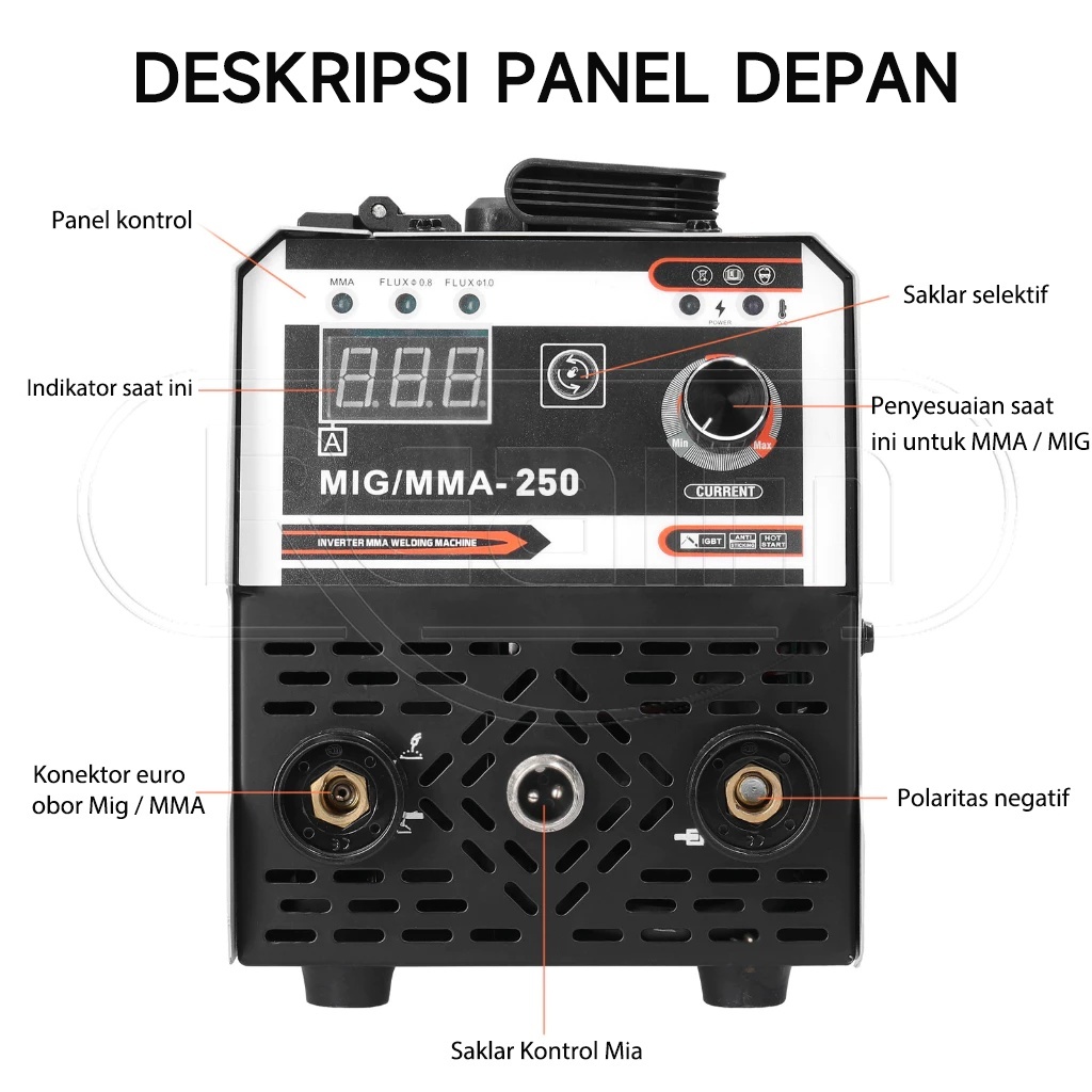 Reaim Mesin Las MIG Inverter 450W IGBT - Welding Machine Portable untuk Besi, Baja & Stainless