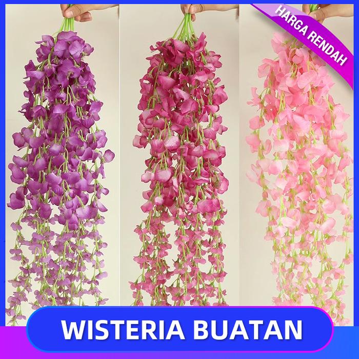 Daun Wisteria Jumbo 12 Pcs Bunga Plastik Artificial Dekorasi Tambahan Bunga Rambat Juntai Wisteria Jumbo Gantung Artific