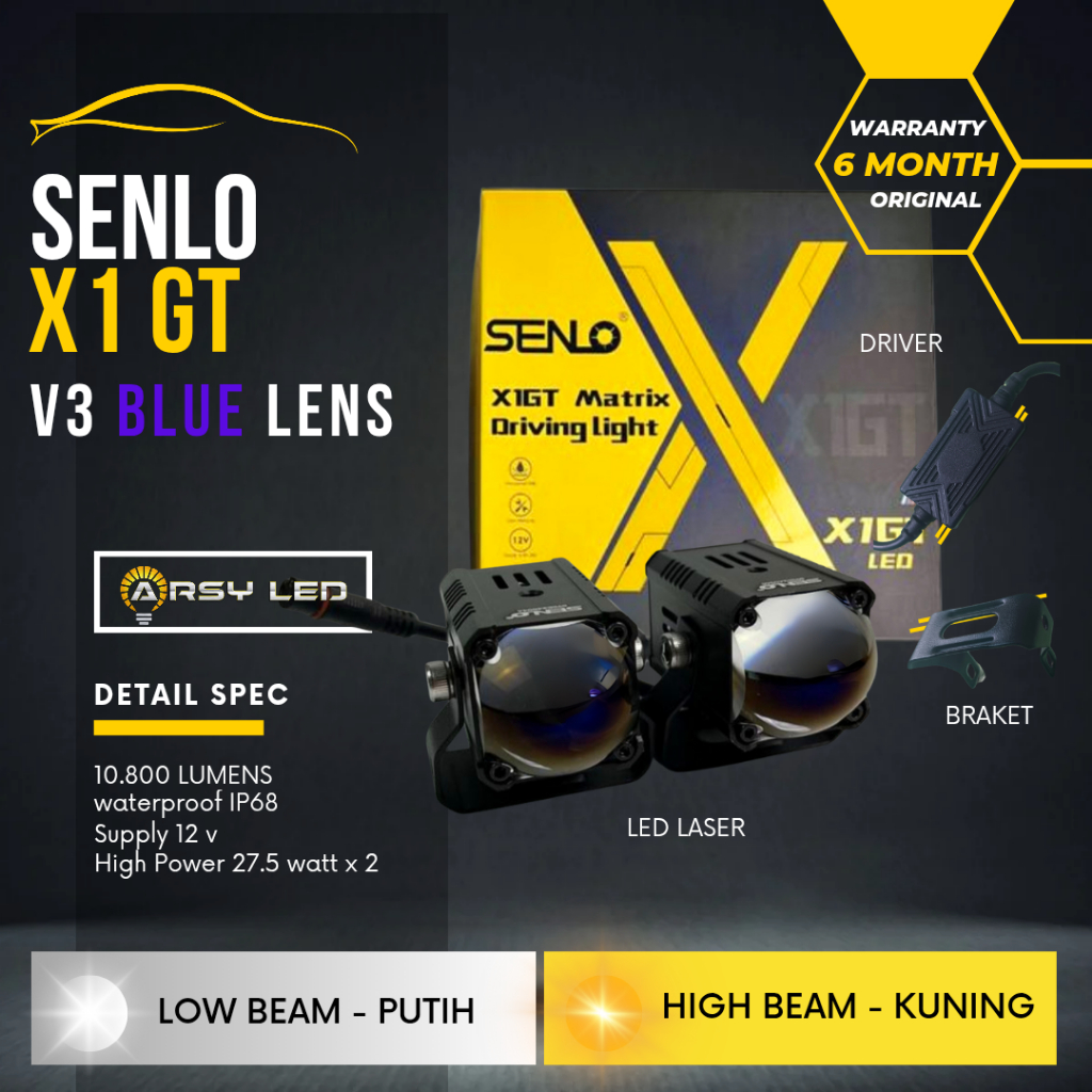 mini laser SENLO X1 GT plus V3 blue lens lampu led motor mobil kabut foglamp sorot 27w