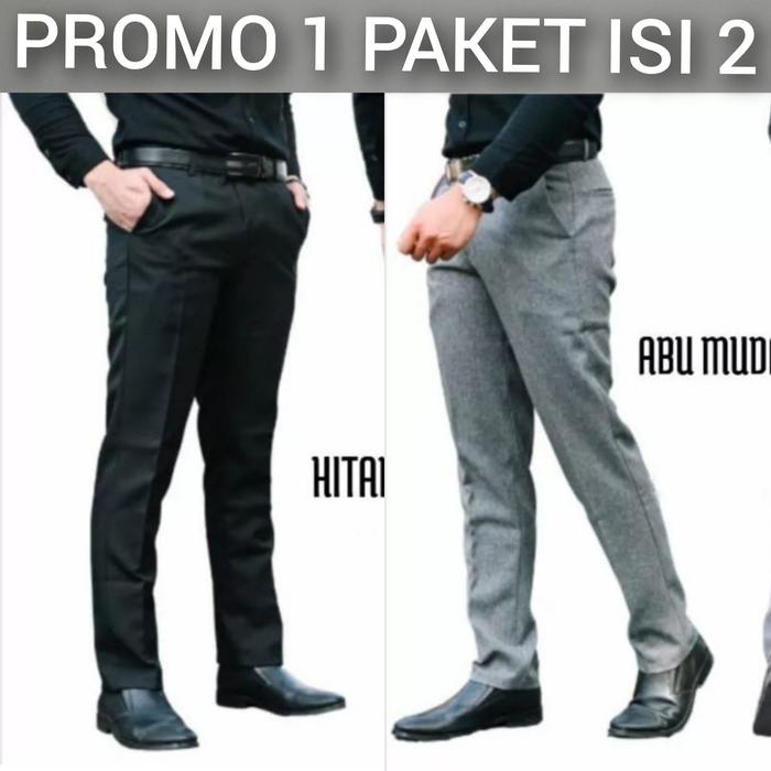 Promo 1 Paket Isi 2 Celana Formal Panjang Pria Dewasa Kantor Slimfit Bahan Kain Semi Woll Kerja Hitam Katun - Hitam+Abu