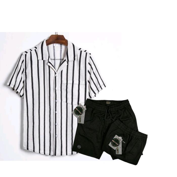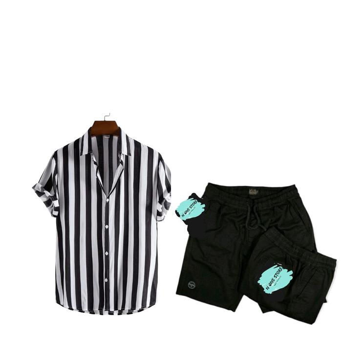 Set Kemeja Motif Amarilo Dan Celana Pendek Broadshot Pria Wanita, Outfit Santai Casual Hitam Putih Polos Dewasa Setelan
