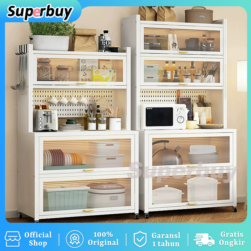 Rak Dapur Lemari Dapur Dengan Pintu Rak Penyimpanan Microwave Oven Rak Multi-Lapisan Lemari Piring Lantai Berdiri Rak
