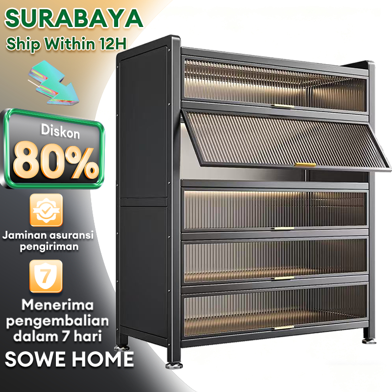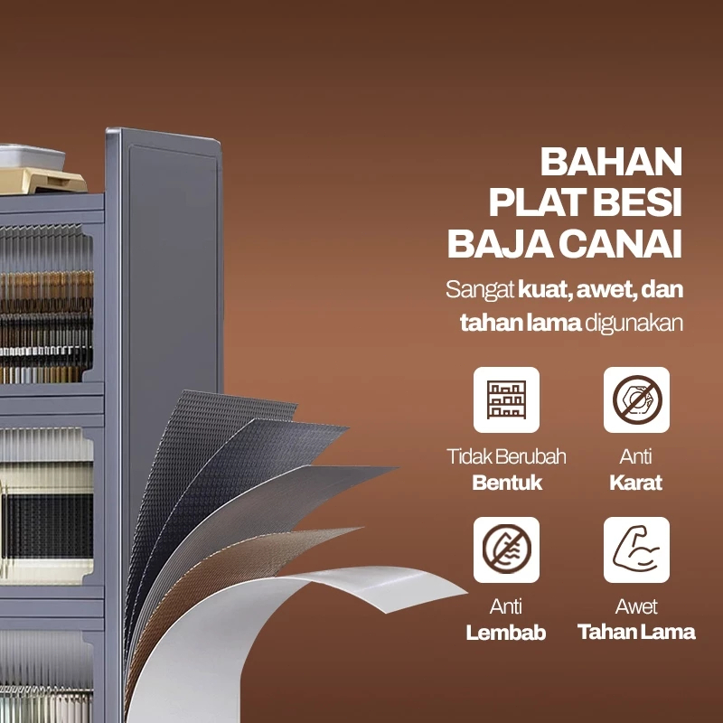 Lemari Piring Tertutup/Rak Piring Minimalis/Lemari Dapur Minimalis/Rak Dapur Serbaguna/Rak Piring tertutup/Rak Dapur Multi-layer Dengan Roda Pintu