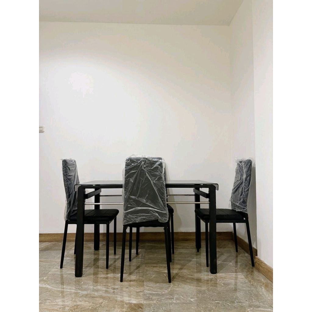 Meja Makan Tempered glass 4 Kursi Meja Makan Kaca Besi Termurah Terlaris Cirebon Bandung Jakarta Bogor Tangerang