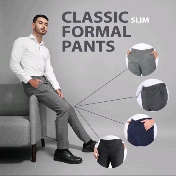 Beli 1 Gratis 1 Celana Kantor Formal Slimfit Pria Dewasa Bahan Semi Woll Celana Kerja Panjang Pria Nyaman Casual Hitam T