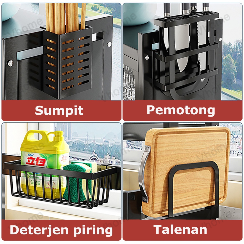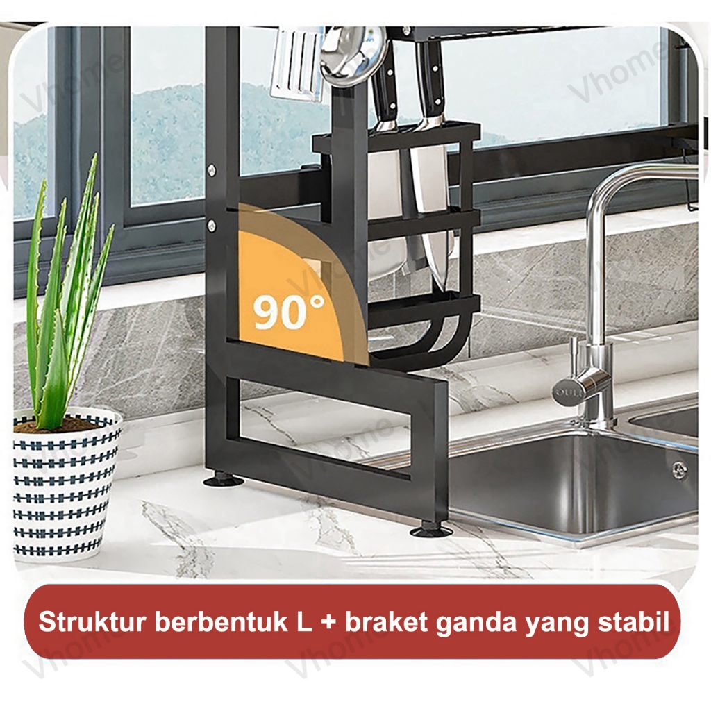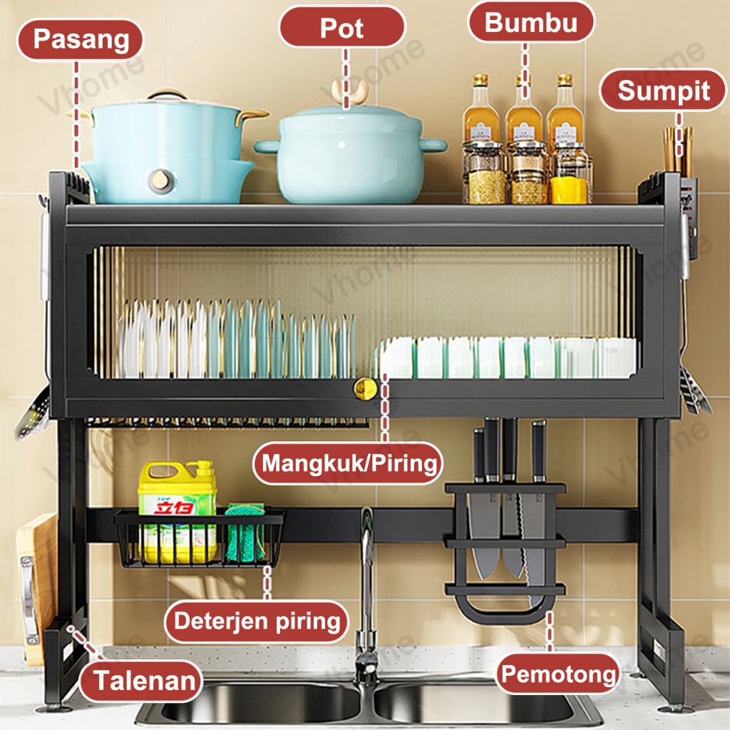 Vhome Rak Piring Wastafel Kabinet Dapur Stainless Steel Multifungsi Dengan Tutup Tahan Debu