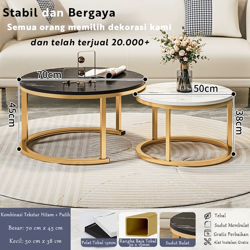 Set Meja Tamu Minimalis Meja Ruang Tamu Bundar Meja Kopi Minimalis Motif Marble Premium