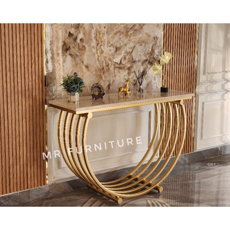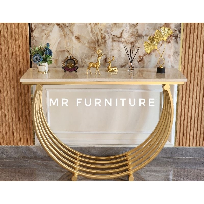 Meja Konsul Curva Gold Top Marmer Krem 120x40x80cm