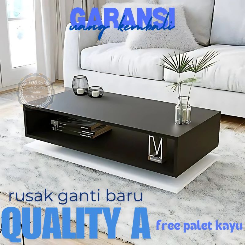 "Meja Coffee Table Minimalis Modern Hitam Putih | Meja Ruang Tamu Elegan & Fungsional"