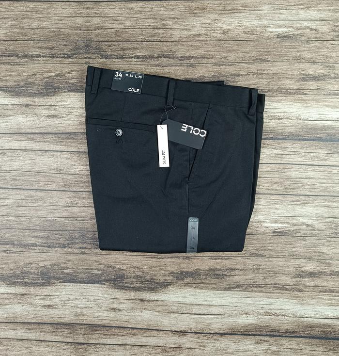 Cole Celana Panjang Formal Kerja Pria Cowok Hitam Krem Khaki Crem Reguler Slimfit Kantor Bahan - Cl-Hitam Slimfit, 32