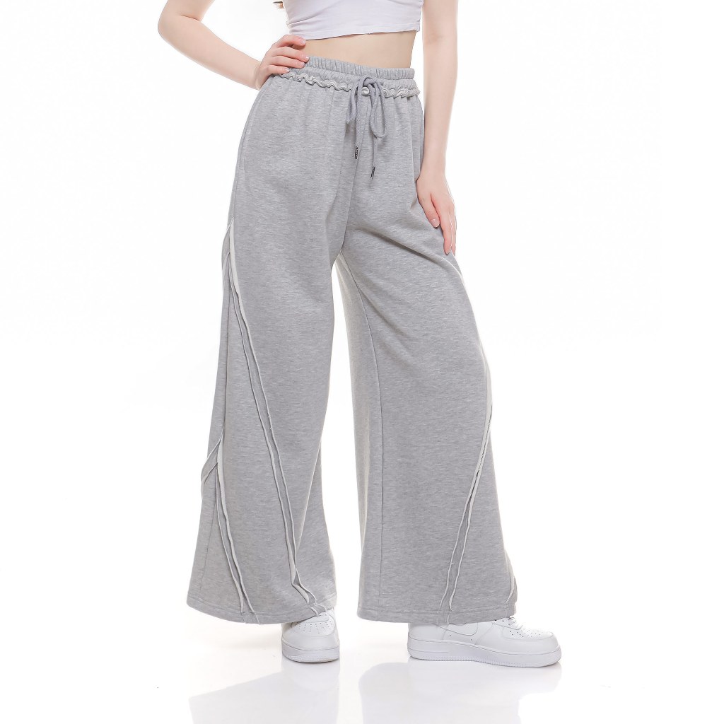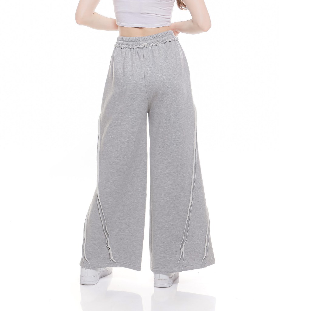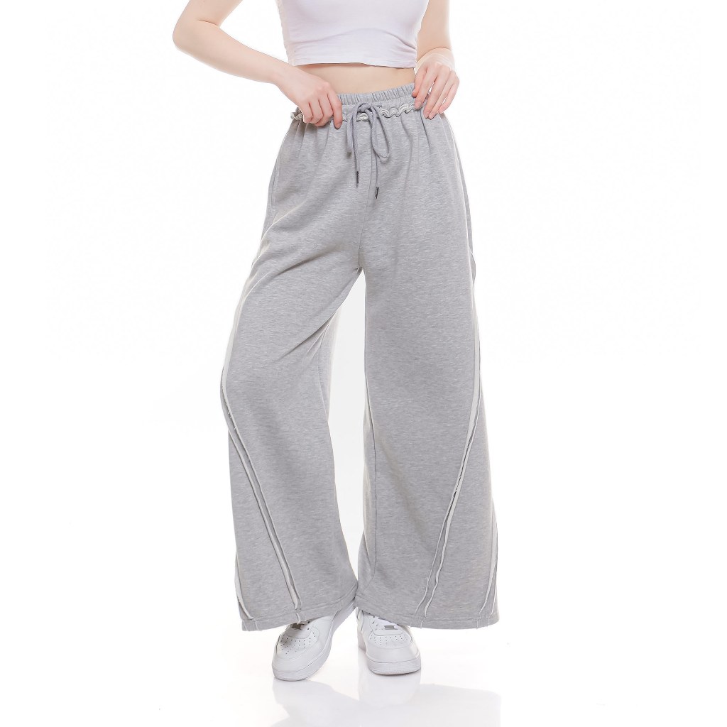 Enough For Today Baggy Pants Wanita Wide Leg Celana Panjang Pinggang Karet Abu Misty Jahitan Garis Samping