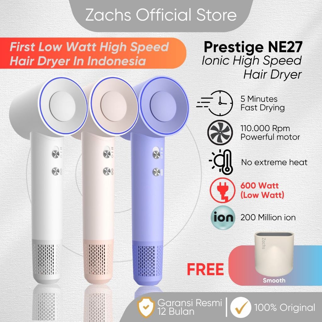 Zachs Prestige NE27 Ion Hair Dryer Silent and Light Weight Pengering Rambut Ion Profesional Tidak Berisik dan Ringan