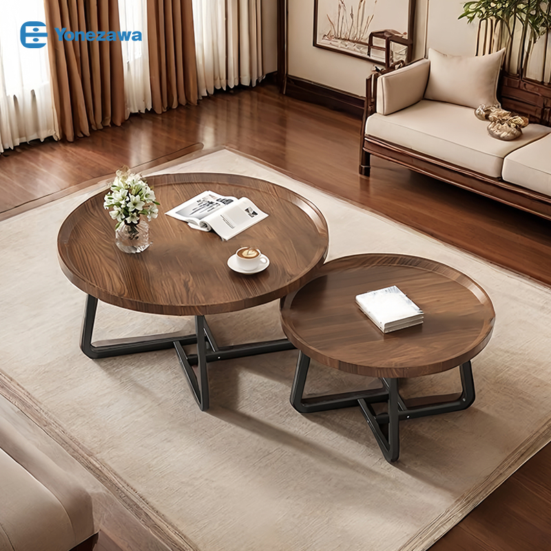 YONEZAWA Meja Kopi Modern Aesthetic 2-In-1 Dapat Dikombinasi Bebas Meja Ruang Tamu Meja Bulat Meja Kamar Meja Makan Meja Samping